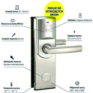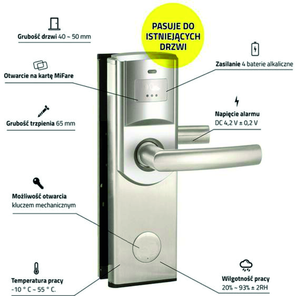 kupowania nowej karty, - pełna kontrola zdarzeń w hotelu: zamki posiadają wewnętrzną pamięć zdarzeń (z zapamiętaną